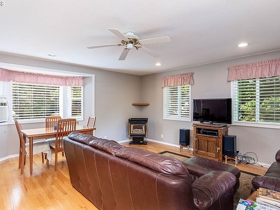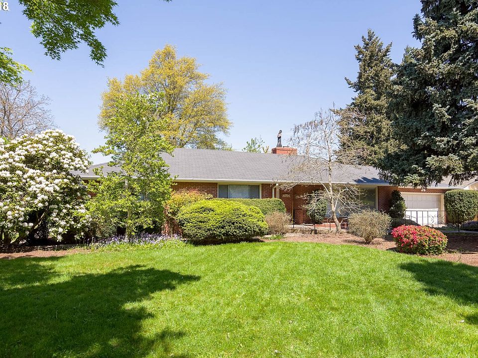 This mid-century classic has been lovingly maintained and has many upgrades. Features include hardwood floors throughout; a formal dining room with french doors opening up to the living room with a gas fireplace; a gas stove in the family room/informal eating area; auto sprinklers; an organic garden; an abundance of storage space; newer dishwasher; fridge; furnace; shower surround; insulation.