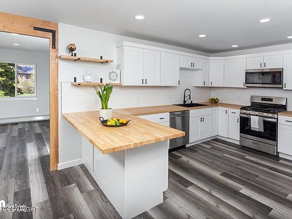 Come see this completely remodeled ranch style living. All new ss appliances, new kitchen with custom tile work, new LVP flooring, new ext & int paint, new sheetrock, new heating sys & water combo, new plumbing, new windows and doors, new bathrooms with custom tile work, new garage door and opener, new concrete garage floor and much more. Close to shopping, JBER,UMED and schools.