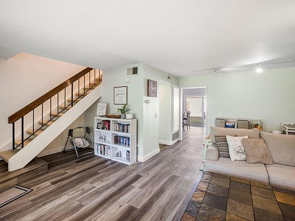 Super nice Tanglewood townhome! Luxury vinyl plank flooring downstairs. Light and bright remodeled kitchen features quartz countertops and newer stainless steel appliances. Large sliding door in family kitchen opens to the entertainer's patio / outdoor-living area. Primary bedroom suite features a balcony overlooking the park-like greenbelt. Tastefully remodeled hall bathroom upstairs. New energy efficient windows. Ceiling fans in bedrooms. 2 car garage and laundry area. VA & FHA buyers are welcome here. Seller's current 2.25% VA loan can be assumed with a transfer of VA eligibility and sufficient cash to loan. Tanglewood offers a community pool, spa, tennis, RV parking and beautifully maintained greenbelts. Very convenient Carlsbad location with stores and 78 freeway approximately a mile away. Close to 5 freeway, Carlsbad Village and beaches. Back on market 7/13/23 at no fault of Sellers.