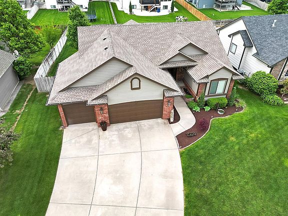 Look no more! Your new home is waiting for you in the desirable Valley Center school district. This beautifully landscaped, immaculate home offers an open floor plan with split three bedroom layout, great for family gatherings and visiting friends. The primary bedroom has its own ensuite with separate soaker tub and shower, two sinks and walk-in closet. You'll love the large walk-in pantry, granite island with seating, stainless steel appliances, and hard wood floors in the roomy and functional kitchen. The living room features a fireplace for those cool nights, and multiple tall windows providing an abundance of natural light. Off the kitchen is the laundry room with built in drop zone. Walk out the dining room sliding glass doors to the inviting deck with roll down shade screens, and composite flooring, rails, and steps that were all new in 2023. The newer, generous sized patio will provide many hours of relaxing and entertaining in your own backyard paradise. There are two additional bedrooms and a full bathroom that complete the main level. In the view out basement you'll find a sizeable family room perfect for a sectional creating a great TV viewing area, with ample room remaining for a craft area or game table. There are also recessed shelves to display your favorite pictures and decor. The office with French doors is perfect for working from home, or could be used for a playroom, exercise room, or hobby room as well. The 4th bedroom and 3rd bathroom with a storage closet, and an unfinished storage room, complete the basement layout. Situated in a friendly neighborhood with playground, swimming pool, sidewalks and ponds, this makes for an ideal place to call home. Don't delay - come see it today!
