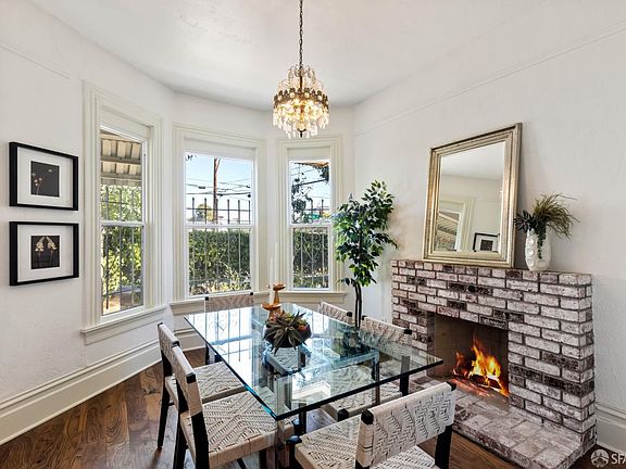 A lovely home on a large usable corner lot centrally located on the Emeryville border.The property is completely fenced & gated. The home has an open floor plan with high ceilings, upgraded dual pane windows, newer wood floors, an office plus living room with fireplace & dining room with another fireplace. Remodeled kitchen & the Jack & Jill bathroom. Other features include newer roof & double sided wall heater, new water heater, pull down stairs to attic.There's a finished detached garage perfect for an art studio, full on home office & more. Lots of yard space with mature fruit trees, covered patio. There is also an off street onsite parking on site. Sewer Lateral compliant. Walk Score/70.