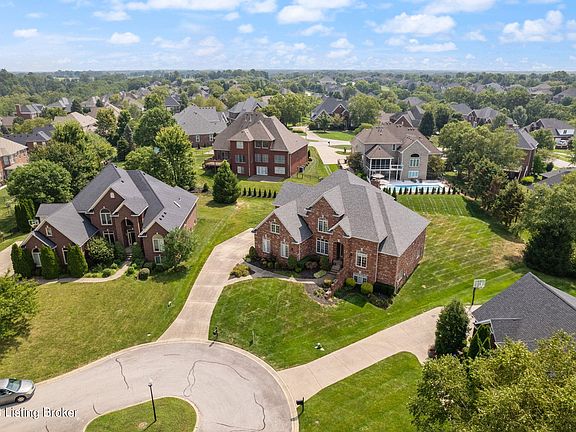 Welcome to Hillcrest living at its finest! Located on a peaceful cul-de-sac, this 5,200 sq ft home is sure to impress with an abundance of natural light. Boasting an open floor plan with a stunning 2-story foyer to welcome guests, this 6 bedroom home can accommodate many! Discover the formal dining room with columned entry, hardwood floors that flow throughout, wainscoting, and elegant chandelier as the focal point. Make your way through French doors that open into the formal living room that could double as an office. The impressive great room features extended-height ceiling, a wall of windows allowing in plenty of natural light, custom built-ins, ceiling fan with light, and handsome fireplace as the centerpiece. Check out the expansive eat-in kitchen that is a chef's delight! Discover amenities such as the prep island with granite countertops, cherry cabinets with ample storage space, planning desk, walk-in pantry, built in hutch, and a full complement of appliances. Off the kitchen is the relaxing screened-in porch and conveniently located laundry room with added cabinets and utility sink. Don't miss the spacious 3-car garage! Retreat to the main level owner's suite with spa-like en-suite bathroom. The bedroom offers a tray ceiling with ceiling fan, plush carpeting, and attached bathroom with separate vanities, walk-in shower, relaxing tub, and walk-in closet. A powder room rounds out the main level. The second level is home to four additional bedrooms with large walk-in closets and separated by two full Jack-n-Jill bathrooms, both with double vanities. Enjoy extra living space in the large fully finished walkout lower level, complete with ample storage, a guest bedroom, full bathroom, family room with fireplace, wet bar with dishwasher & refrigerator, and exercise room. Hillcrest offers neighborhood amenities, including community pool, tennis courts, and playground. This home is also in the award-winning North Oldham County school district, with the Goshen Elementary at the front of the neighborhood. Make your appointment to tour this lovely home today!