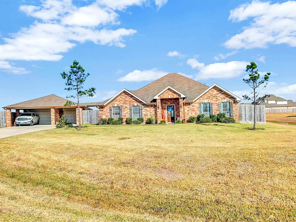 A superb opportunity awaits you in Rosharon! This gorgeous, single-story home has been lovingly maintained. Located on an oversized lot on a cul-de-sac, you'll have plenty of space to relax with family and friends. Featuring 4 bedrooms, a study, and 3 baths, the home is fully equipped and meticulously designed to meet your every need. Sleek architectural designs and high ceilings invite you inside. A grand kitchen offers a double oven, an island, and beautiful granite countertops. Recessed lighting and under-cabinet lighting create an atmosphere perfect for any chef. It opens to a large family room with a fireplace and a comfortable space to relax or entertain friends and family. French doors open to a study, office, or anything that suits your needs. The spacious primary bedroom ensuite is a perfect retreat, featuring a double vanity, tub, separate shower, and a walk-in closet. Kick back and enjoy a view of the water on an expansive backyard patio. Near 288, this place is a must-see!