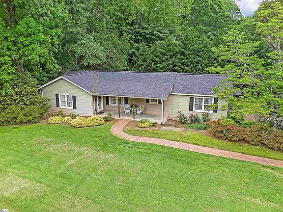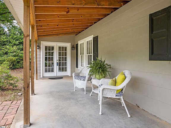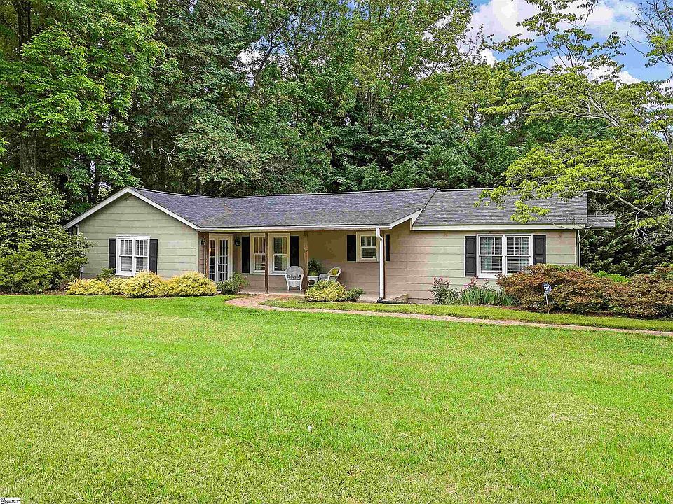 A classic southern front porch welcomes you to this lovely one story home with 2 Bedrooms & 1.5 Bathrooms on 2.42 acres! Enter from the covered porch to the formal Living Room with gorgeous hardwood floors, a fireplace with gas logs and beautiful built-ins. These wonderful hardwood floors continue into the Bedrooms and Dining Room offering plenty of charm and character. The Primary Suite includes a spacious Bedroom, full Bathroom and double closets. The secondary Bedroom also has double closets. There is a half bath in the hallway with easy access from the bedrooms and living areas. The Dining Room leads you to the Kitchen with a pantry, gas stove, built-in microwave, dishwasher and refrigerator which all remain. The Laundry Room offers additional storage and the washer & dryer will remain. The Den offers plenty of additional space that can be used as a casual TV room, Office space, casual dining space, playroom or could easily be converted into a 3rd bedroom. A side door from the Den leads to the private patio which is surrounded by established landscaping to give the feel of a lovely English garden. The large back yard is lined with trees offering plenty of privacy on this 2.42 acre property.