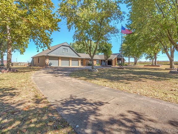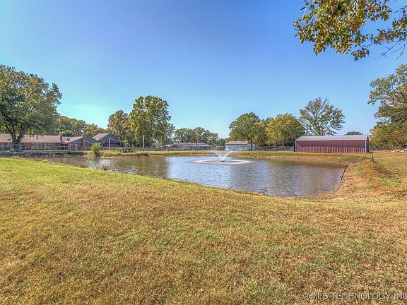 Welcome to Creek Hollow in Coweta, Oklahoma! Check out this spacious 4-bedroom, 4-full bathroom estate on a private 2-acre lot with 3 living areas, 2 formal dining rooms, studio apartment above the garage, in-ground gunite pool, large deck for entertaining, pond, storage barn, and a covered front entrance with circle drive. Enjoy hardwood floors, vaulted ceilings, abundant natural light, marble kitchen counters, walk-in pantry, large built-in stainless steel refrigerator, 2 fireplaces, and dedicated office area. The 3-car attached garage has a heated/cooled 3rd bay creating a perfect workshop for your hobbies. Nestled among mature trees on a dead-end road for ultimate privacy. No HOA! Easy access to Hwy 51, schools, and shopping. Come check it out.