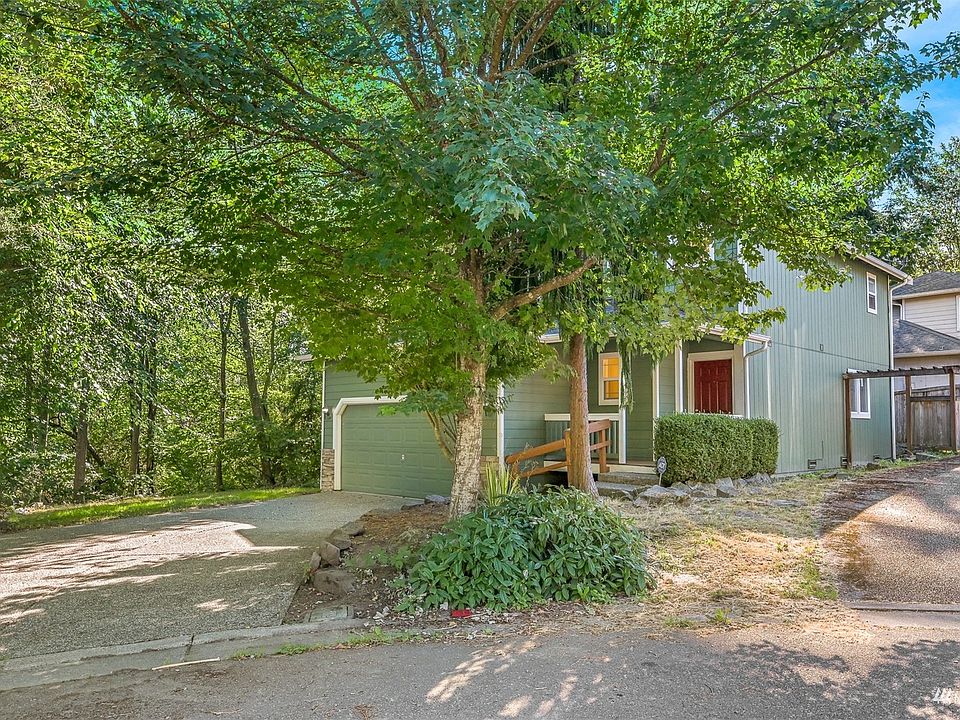 This home is on a corner lot and is surrounded by trees, it feels private from the moment you drive up. Well kept, light and bright, open floor plan will make you want to invite company over! Welcoming entry way with tall ceilings and well designed staircase add stylish feature. Gas fireplace in living room that leads to separate dining space and functional breakfast bar! 3 bed, 2.5 bath home has new carpet throughout and was well kept. Low maintenance yard with great patio, enough space to enjoy an outdoor dinner party, but not too much to maintain - abuts up to a green space so you will never have neighbors on the other side! Don't miss!