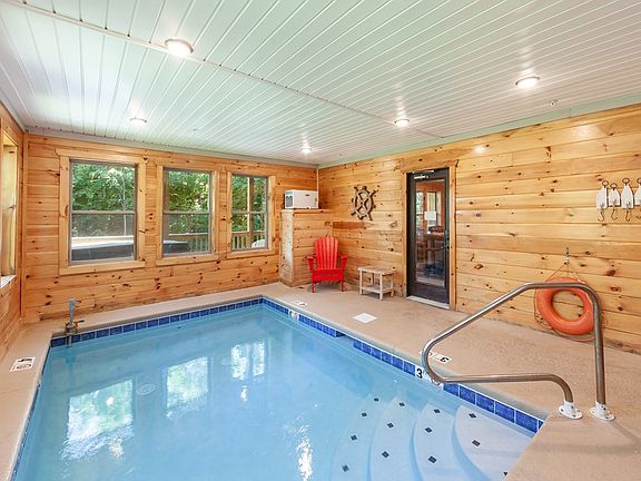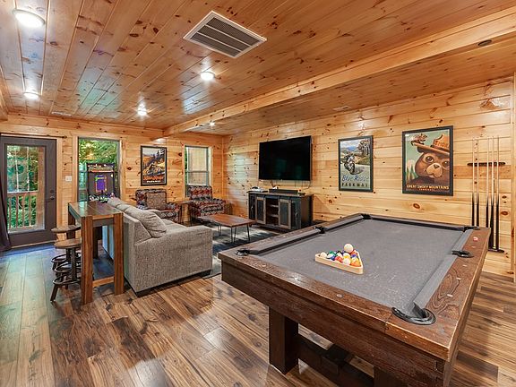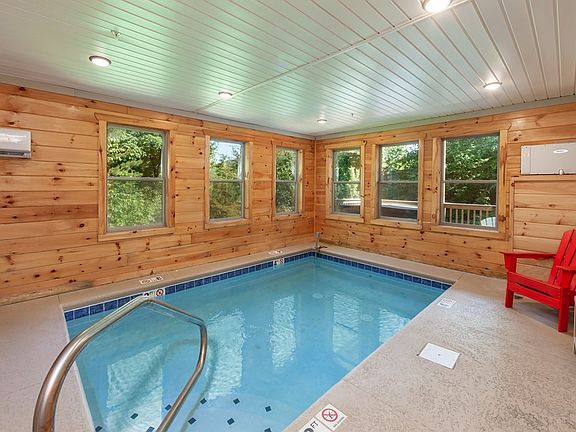 LOCATION LOCATION LOCATION! Just minutes from the Pigeon Forge Parkway! This cabin has an indoor pool and PRODUCES! Over $147k in 2021 with multiple owner's stays. Handsome tongue and groove throughout and soaring cathedral ceilings in the living room provide plenty of charm and character. 3 full length covered decks for plenty of outdoor living space. Primary bedroom on main floor with easy access and 2 ensuites on the upper floor with generous bathrooms! A cozy loft overlooks the great room. Large game room and theater area in the basement round out this well appointed overnight rental!