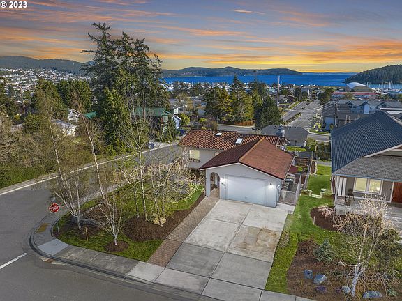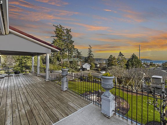 This artist-designed custom home transforms the soul while creating functional spaces embracing a 200-degree south-facing view. Beautiful 2-story stone fireplace, & quality materials freshened w/new paint, new carpet, new lighting! Great room on the lower level along with flex space, main level bedroom has a creative loft area & primary suite is huge! Extensive professional landscaping: private backyard with a large, covered patio, waterfall, pond, a fire/conversation area, & dog run. The two-car garage was converted to caretaker's quarters but can easily be converted back to a deluxe garage. The separate art studio is flooded with natural light. The winter sunsets are stunning! Blocks from Washington Park beaches, trails, & boat launch.
