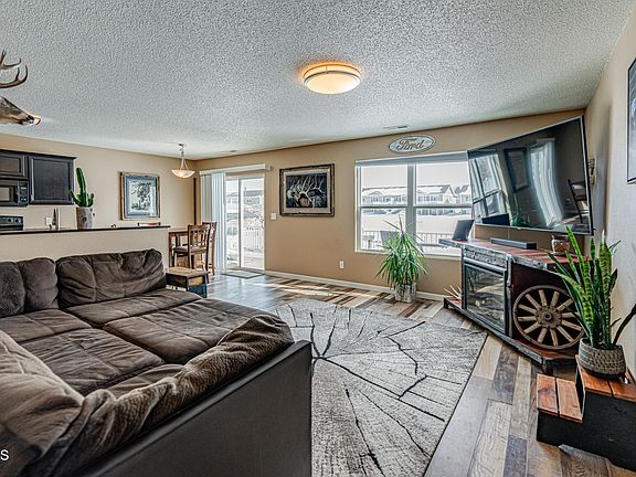 If you are looking for carefree, waterfront living, look no further. This 3 bed 2.5 bath townhouse is conveniently located on the bay in Lakewood, and comes with you own private dock space. The main floor features open concept kitchen/dining and living area. Right out the sliding patio door is a large cement patio area and is only steps away from the water. Upstairs you will find the primary bedroom/bathroom as well as 2 additional bedrooms and a full bath. The double attached garage is finished and heated! This is a must see property. Call today to set up your private showing!