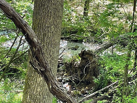 Perfect Getaway ! Hunting Lodge or just a weekend away on 9.9 acres , step back in nature with a small home with pond and beautiful winding creek! Nice walking trails on your own property that borders Piney fork Creek. Perfect front porch just needs a rocking chair or swing! Mini farm for horses or other livestock, barn has hay loft and a fenced in attached lot. Property is fenced for horses, etc. Property is being sold as land only!
