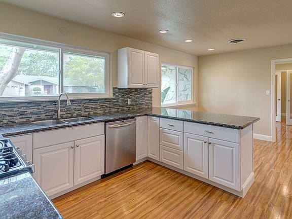 Centrally located in downtown Bakersfield and just feet from the bike path this downtown Bakersfield classic has been completely re-imagined to shine once again. Double black entry doors lead you to a spacious living & dining room ~ both highlighted by massive woodburning stone fireplaces. Black granite counters throughout beautifully contrast with new white cabinets and hardwood floors. The master bedroom features french doors to the backyard and the master bath includes a large step down shower big enough for two ~ or three ~ or a party. European style glass vessel sinks complete the contemporary look. The office/den is located immediately off the entrance and features double french doors. Dimmable LED lighting throughout beautifully highlights the colors & textures of this Riviera Westchester classic.