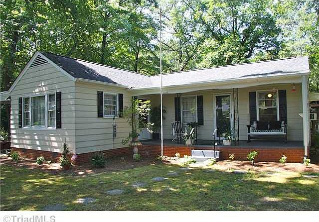 CALL ANDY NOW AT 336-508-1111 x1 FOR ALL THE INFO! This 3 bedroom 2 bath home is surrounded by mature trees and landscaping on a .73 acre lot. The rocking chair front porch invites you in. The paneled living room has two entrances for convenience. The kitchen is open and flows into the dining room with an entry to the 2nd full bath and laundry room. There is an attached carport, detached one car garage with storage area and a covered open air patio area. Convenient location. Close to shopping.
