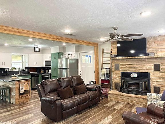 Welcome home! This picturesque all brick home beckons you to come & stay a while. From the front pea gravel garden seating area to the remodeled open concept design, all the way through to the enlarged covered back patio featuring a hot tub. Gorgeous PVC flooring leads you in to reveal the kitchen's refreshing green & white cabinets & new countertops. The bar has been updated with wood that compliments the flooring, new beam, & custom barn doors on the pantry. Bonus: 1/2 acre lot with new 20x40 shop!