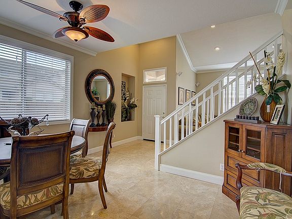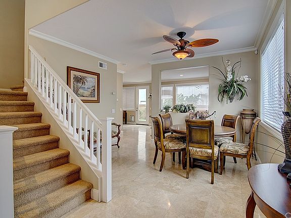One of these has not been on the market for about a year...so you might want to hurry. Beautifully gated community of 34 homes across from Orange Coast Community College. 4 bedrooms plus an upstairs bonus room (the picture with the guitars). Open kitchen in back with view of backyard and open to the family room. Travertine floors, granite counters, cathedral ceilings, formal dining, formal living room, direct garage access into a 2 car garage. A beautiful home and move-in perfect corner lot.