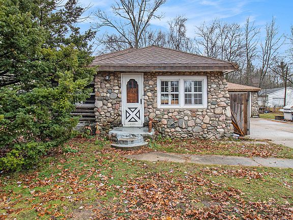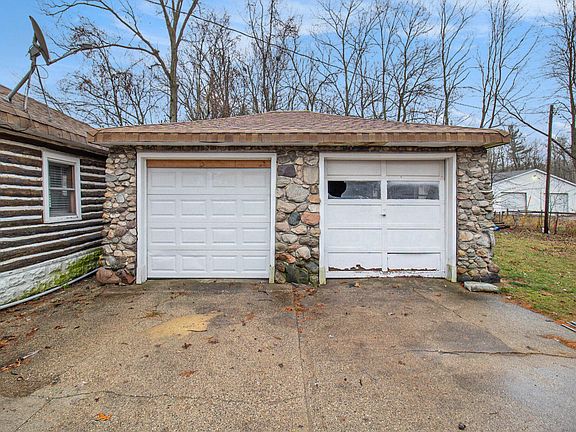 This 3-bedroom, 1-bathroom home is a fantastic opportunity for those looking to invest or create their ideal living space. Situated on a 0.37-acre lot, the property boasts a charming log and stone exterior, a fenced yard, a detached two-car garage, a chicken coop, and an additional storage shed. Inside, you'll find a cozy living area with a functional layout, including main-level laundry for added convenience. The home also features an unfinished partial basement, offering the potential to expand your living space or create a custom area to suit your needs. While the home needs some TLC, it holds incredible potential. Conveniently located in Reeths-Puffer near the expressway, this property combines opportunity and location to make it a must-see! NO FHA/VA due to condition.