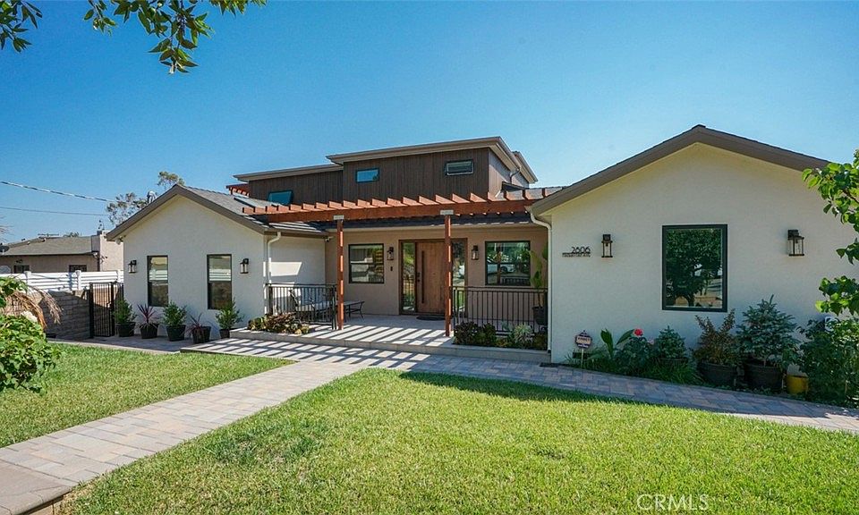 Come see this stunning home completely rebuilt in 2023–2024! It features all-new systems and finishes—including roof, plumbing, electrical, flooring, walls, and more—all with permits. Originally a 2-bedroom, 2-bath, 1,400 sq ft home, it is now a spacious 5-bedroom, 4.5-bath, 3,240 sq ft residence with thoughtful design and modern functionality. Ideal for entertaining guests, the open-concept living and dining rooms flow seamlessly into a custom kitchen with a large island, premium stove, custom-built cabinets, and hidden-panel refrigerator. Two electric fireplaces enhance the living and family rooms, offering both functional heat and elegant ambiance. The main floor includes 2 bedrooms, 2 bathrooms, and a versatile bonus room that can be used as an office, guest space, or sixth bedroom. The primary suite features abundant natural light, a walk-in closet, and a luxurious en-suite with a rain shower that doubles as a steam room. Upstairs, 3 additional bedrooms include a Jack-and-Jill bath, private balconies, and a bedroom with its own bath and walk-in closet. Modern amenities include built-in surround sound, smart toilets, sensor-activated bathroom lighting, heated towel racks, full surveillance, and alarm system. Three separate AC units allow each level to maintain its ideal temperature, while a whole-house water filtration and softener system ensures clean water for drinking and bathing. The backyard offers beautiful mountain views, a saltwater pool, fruit trees, and hookups for future outdoor upgrades. The remodeled garage includes insulation and recessed lighting ideal for a pool/guest house or potential ADU (buyer to verify with city). Situated in a top-rated school district, this home combines size, luxury, and location—schedule your private tour today!