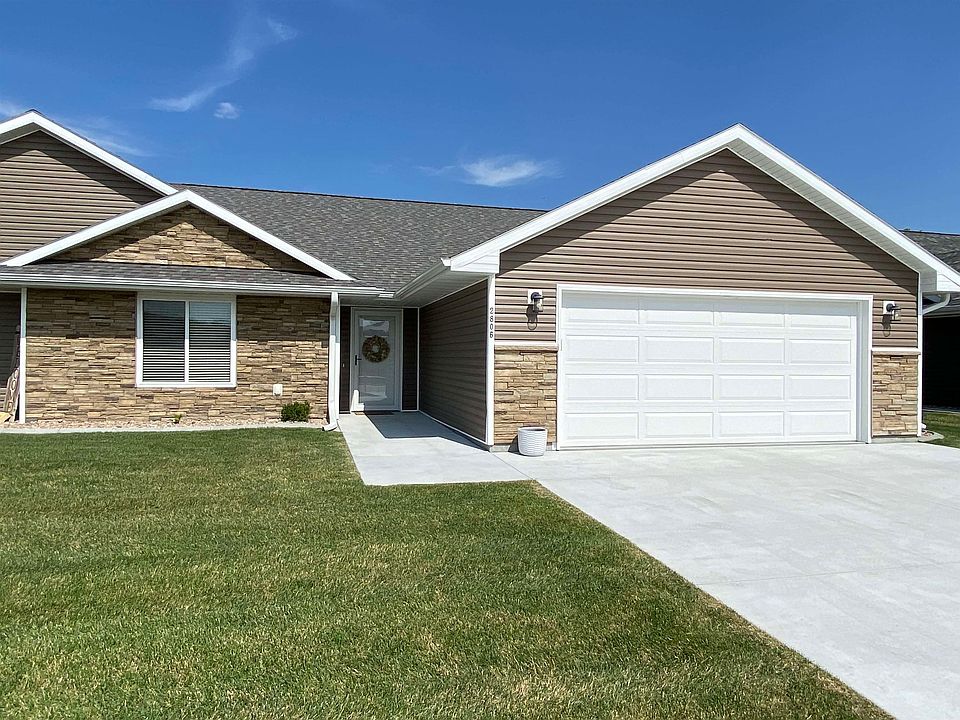MOVE-IN READY duplex gives you a welcoming feel as soon as you walk in. The open concept living room, kitchen and dining room is complete with a vaulted ceiling, a spacious kitchen island and walk-in pantry. The primary bedroom has an attached en suite. Both bathroom showers have new glass doors. The property is located on a cul-de-sac. The property has a HOA fee that can be paid monthly or annually. The HOA covers all lawn care, and snow removal. Don’t miss out on this wonderful space to call home.