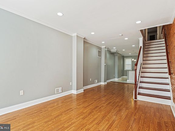 This Renovated, 3 Bedroom, 2.5 Bath, Rowhome with a Private Rear Patio & Deck, Must be seen! Enter into the Bright Main Level featuring an Open concept floor plan and gleaming hardwood flooring. Discover the Living Room featuring impressive Exposed brick, Crown molding and recessed lighting. Next, the Dining Room provides comfort to enjoy the meals you prepare in The Gourmet Kitchen. The kitchen features a Kitchen Island, White Shaker Cabinets, Gas Cooking, and Granite Counters. Continue to the half bath and convenient main floor laundry. Through the access door find the Private Rear Courtyard Patio, offering even more space to entertain family & friends. Make your way upstairs and discover the Primary Bedroom with hardwood flooring and access to the Private Deck, perfect for relaxing and enjoying views of the city. A second floor sitting area has room for a desk, enjoy a quiet reading or study area. A Second Spacious Bedroom and a Full Bath with Tub-Shower and gorgeous tile surround rounds out the Upper Level. Make your way to the Lower Level featuring the Recreation room, Bedroom 3 and a Full Bath with walk-in shower. This Home is Walking Distance to the Library and all the outdoor activities at Patterson Park with an ice-rink, walking paths, swimming pool, dog park, and the Pagoda, a historic observatory. Don’t Miss It!