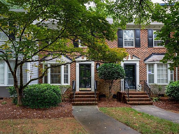 Charming middle-unit condo in central location; 1200 sq. ft., 2- bedrooms with private baths, gas fireplace, balcony and private patio/deck backing up to Guilford Battleground Park, hardwood floors, carpet upstairs, new paint, granite countertops, good appliances, new washer/dryer, pool for residents. Pets permitted with deposit. No smoking allowed. Ample free off-street parking available. Gas fireplace usage with renter purchase of gas service. One-year renewable lease.