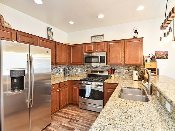 Better than new! Fabulous family home with all the upgrades you love under $400,000. Own this home and imagine seeing the kids playing at the park while working or cooking inside. Beautiful conversational kitchen with double oven and convection stove; open to breakfast bar and dining. Light and bright family room for gathering. Relax at the end of the day in the spa looking at open space and the stars. Spa stays. Fully fenced for your furry friends with a low maintenance yard and all the benefits of a large play area for the kids next door. Spacious master bedroom with private bathroom. You will enjoy the walk-in closet, dual sinks, separate soaking tub, and private water closet.