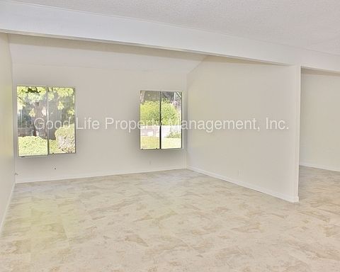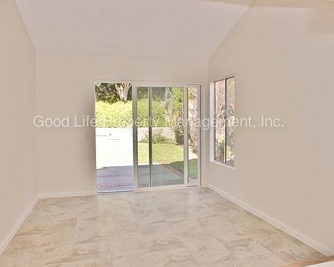 AVAILABLE NOW Beautifully maintained 3B/2BA house available for lease in Carlsbad. Located on a quiet street, this home features 1,469 SF of living space, and boasts: - Great location in Carlsbad! Minutes from award winning schools! Large open space park, and playground located at the end of the street! - Well maintained exterior w/ charming curb appeal - 2 car attached garage w/ room for additional cars in driveway - Washer/Dryer hookups in garage - New windows to be installed throughout - Large private yard features backs up to hillside, and features mature trees for added privacy, and also features paved patio - Front entry opens to expansive great room that features tile flooring, fresh paint, and open layout - Large eat-in kitchen features access to backyard, garage access, stainless steel fridge, electric range, tile counter tops, and ample cabinet space - Spacious master bedroom features tile flooring, dual closets, and attached bath - Master bathroom features large vanity & stall shower - Light and bright second & third bedrooms - Second full bathroom features shower/tub combo TERMS: - 1 year lease - Owner will consider 1 pet for additional $500 deposit (no aggressive breeds) - Tenant pays: all utilities & responsible for yard maintenance - Tenant must carry renter's insurance w/ minimum $100K liability Good Life Property Management, Inc. (858) 375-1488 CalBRE #01929564 Price, terms, offerings, availability subject to change. All information deemed reliable, tenant to verify all. *Sorry, we do not accept section 8* For all of our available rentals, or to submit an application, please visit: www.goodlifemgmt.com/properties *Good Life Property Management, Inc. adheres to all Fair Housing Laws* Contact us to schedule a showing.
