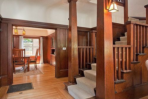 In the heart of the Elmwood! Magnificent original craftsman details, beautiful brick fireplace and hardwood floors throughout. This house and its designer, Ms. Hall, have been featured in books and articles about the California arts & crafts movement. The house has a wonderful flow - perfect for entertaining - and features 3 bedroom, 1.5 baths, refinished floors downstairs, an updated kitchen, bath and a newer deck. The kitchen glows with new marble counters and a gleaming stainl...