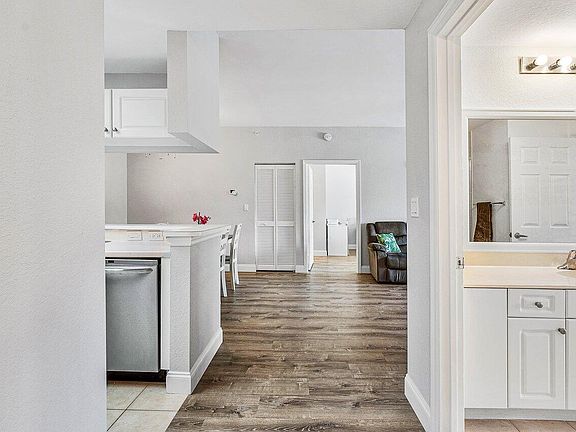 For Sale: bright 2 bedroom, 2 full baths second floor condo with new water heater, floors and paint. White cabinets and stainless steel appliances in open kitchen. Laundry room with full washer & dryer off the kitchen. Large screened balcony. Separate storage unit #22 included. Hurricane impact windows and sliding door. Gated community with resort style amenities including pool, hot tub, fitness, steam, sauna, racquetball, billiards, business center, social room, tennis and playground. Manager on site.