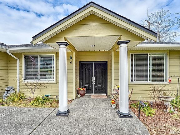 Beautiful one level custom built home with outstanding views of the Canadian Coastal Mountains! This lovingly maintained 3bed/2bath rambler features 9ft ceilings, wide entry & hallways, and a custom open kitchen with granite counters & stainless appliances. The french doors off of the dining area lead to a peaceful backyard to take in the view. Large master bedroom has walk-in closet with attached master bathroom. The highly efficient heat pump, spacious laundry room, and recently planted privacy trees in back are an added bonus. Enjoy the privacy that comes with living at the end of a private road, while only being minutes from town. This is the home you've been waiting for!