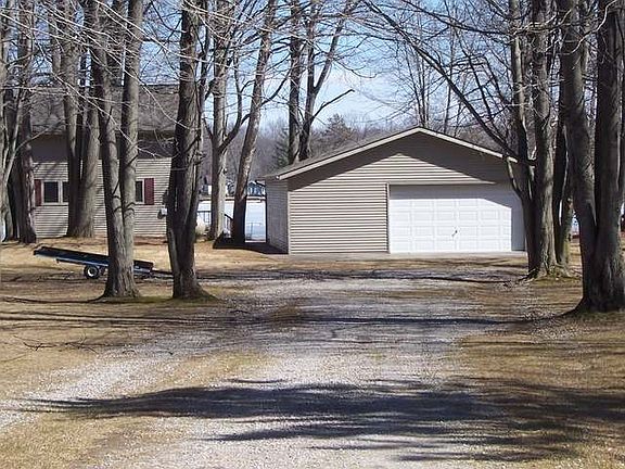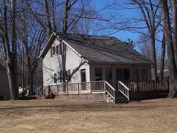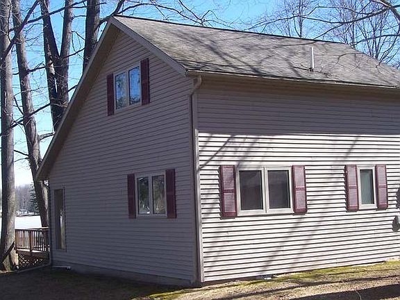 Secord Lake with the morning sun, level, sandy beach. Cathedral ceilings, lots of windows and a door wall on the waterside. Unique open living, dining, kitchen floor plan an and master bedroom on main floor. Two bedrooms upstairs and 3/4 bathroom. Large deck on the waterside for entertaining. Large pole barn 30x48 concrete floor and electric, to store all your toys. Newer vinyl, roof and furnace.
