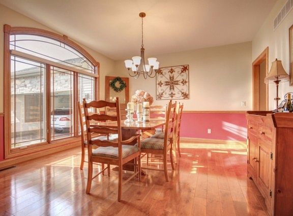 Stunning home in Robeson Meadows West. This home features hardwood flooring through the foyer, formal dining room, kitchen & eating area. The great room features soaring ceilings & a fireplace anchored by built in bookcases. The gourmet chefs kitchen is fully equipped & has a convenient home planning area. The first floor master has large windows, backyard/patio access, & double walk in closets. The master bath includes a walk in steam shower, large tub, & double vanity. You can also enjoy spectacular lake views (including lighted fountain) from the great room, first floor master suite, informal dining area, & back patio. Upstairs are 3 bedrooms (2 w/ full baths attached) & a large bonus room. The basement has a large finished entertainment area with built in wet bar & lots of storage.