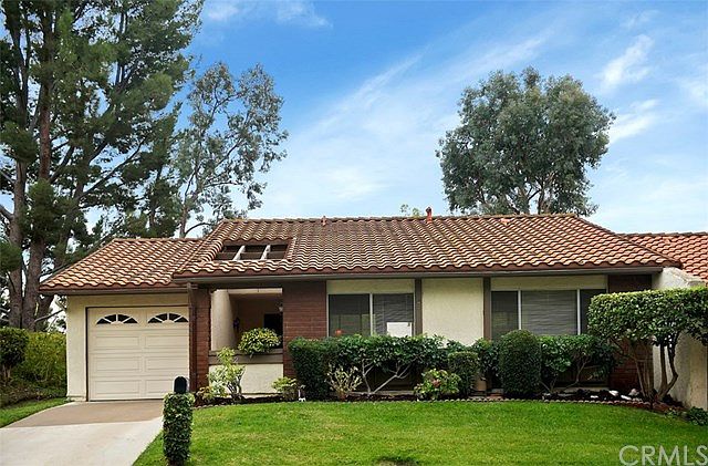 You can't help but notice the panoramic view as soon as you walk into this light and bright Blanca model in 55+ community of Casta del Sol. Whether eating inside or relaxing on the back patio, you can enjoy cool breezes and watch and enjoy the birds. This 2 bedroom, 1.5 bathroom attached home has a great floorplan and is located on a quiet single loaded street. The home features include huge windows to see the beautiful view, lovely gas-log fireplace in living room with vaulted ceiling, mirrored closet doors, and extra storage throughout. The kitchen offers plenty of storage including two pantries, electric stove, dishwasher, refrigerator, and also has direct access to single-car garage. The community boasts many amenities including guarded gates, 2 clubhouses, community activities and clubs, spa, 2 pools, tennis, pitching range, golf course, shuffleboard, card room, workout facilities, gardens, library, lawn bowling. The community is close to Mission Viejo Lake with walking paths throughout the community.
