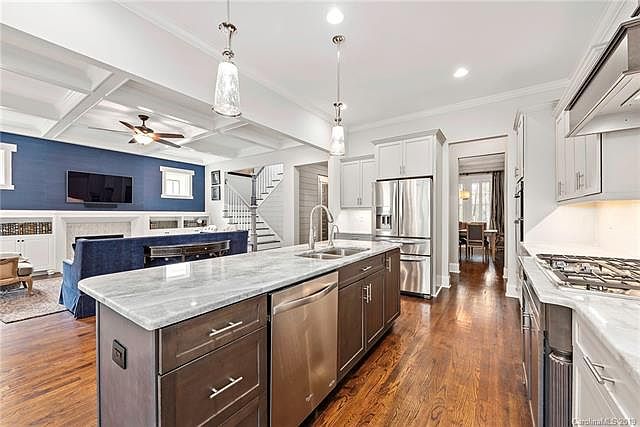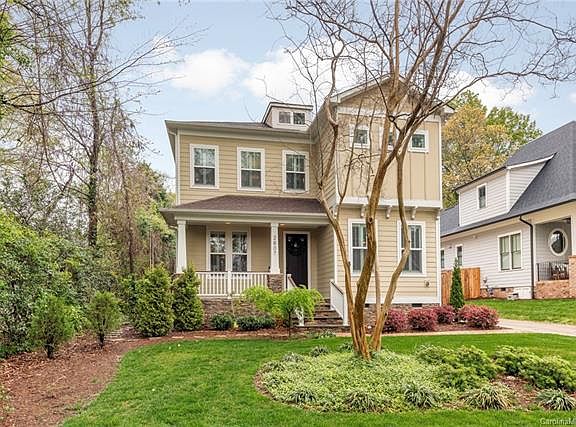Elegant beautiful home in Plaza Midwood. Your family and friends will love the spectacular open kitchen with wet bar. Upgrades abound: custom cabinetry and handmade tiles on fireplace surround, decorative shiplap added in hallways, stairwell and morning room, updated paint, new wool carpeting and upgraded lighting fixtures throughout the home as well as first floor surround sound. Relax under the fans on the vaulted ceiling of your back porch and enjoy upgraded landscaping featuring an irrigation system. Relax in your spacious owners suite or under the vaulted ceiling on your covered porch. This home has it all - great location, upscale features, rocking chair front porch, entertaining space and more!