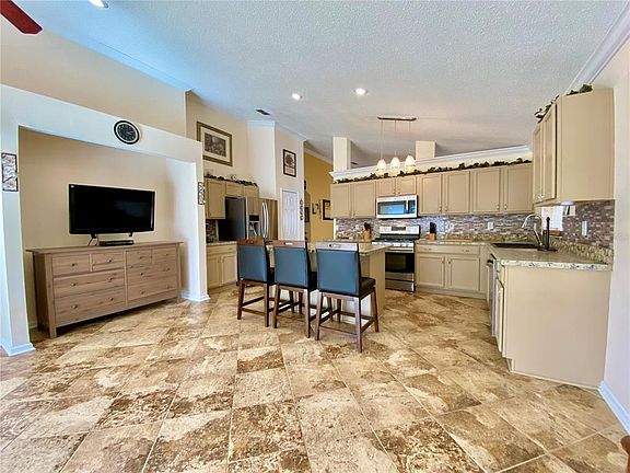 Fantastic 4 bed/2 bath POOL home located in the sought-after, gated community of Weston Hills. Spacious, open floor plan with crown moulding throughout and beautiful ceramic tile in the main living areas. Kitchen/family room combo provides lots of space for entertaining and has sliding doors for a great view and easy access to the private, screen-enclosed pool. Master suite with walk-in closet also has French doors leading out to the pool area making for a perfect retreat. New roof in 2017, new a/c in 2019, and gas water heater replaced in 2016. This home is a must see with plenty of room for entertaining and lots of curb appeal! Only a short drive to Disney and area attractions, and plenty of outdoor recreation within the community including pools, playground, and tennis court. Come check this home out today!
