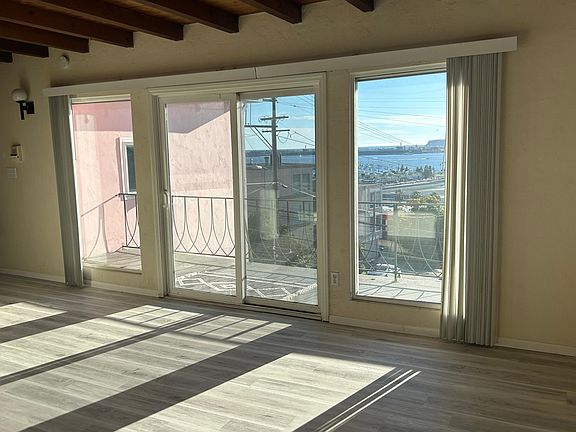 This spacious top floor end unit includes 2 bedrooms 1 bath, one car garage and San Diego Bay and city views from the attached private balcony! Extra Large open kitchen with a breakfast bar has plenty of cabinet space, large living room and a private balcony with sweeping views of San Diego Bay, City lights, Downtown and Point Loma. This small 6 unit complex is in an excellent location near Little Italy/Mission Hills. The bedrooms are spacious and private, apartment has new flooring throughout and newer dual pane windows. Easy access it I-5 freeway, Little Italy, downtown, Mission Hills and Beach Communities. Small pet considered with additional deposit. Common laundry, minimum one year lease required. Owner pays water, renter is responsible for gas and electric. Last month's rent is due at signing. No smoking allowed. We do not allow Airbnb hosting or renting out rooms to anyone who is not on the lease.