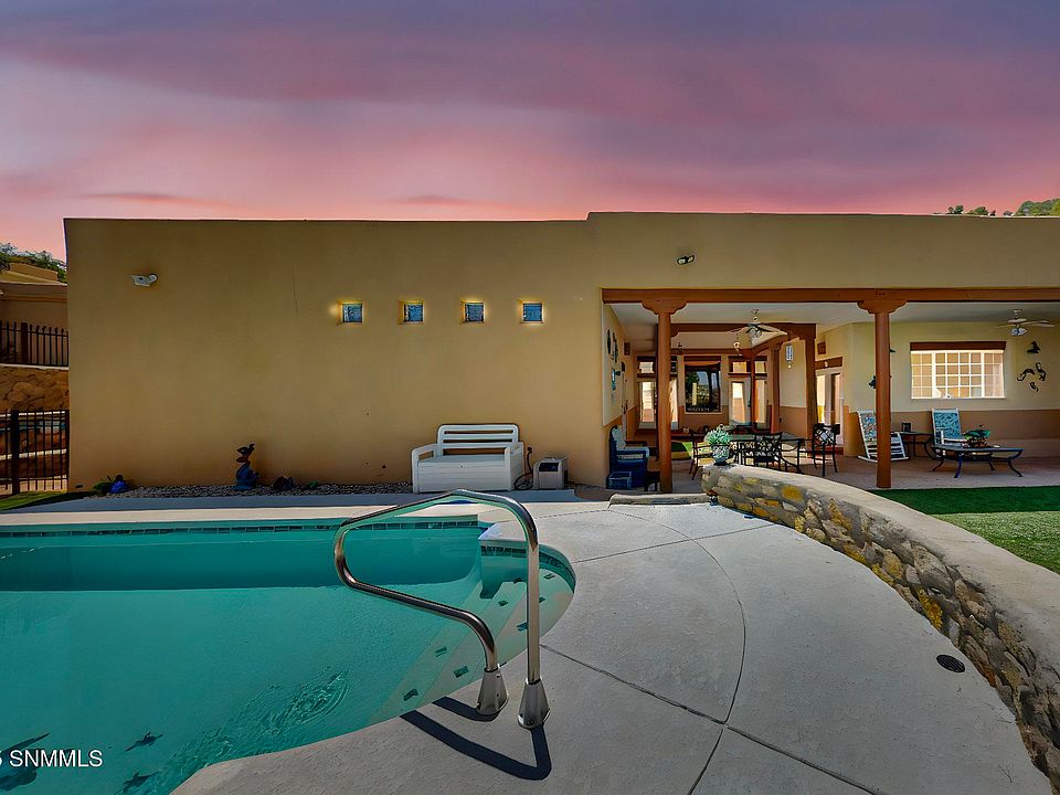 !! OPEN HOUSE 4-6pm 19 Dec 2025 !! Great home with Solar Power and In-Ground Pool in the popular Sonoma Ranch area of Las Cruces. This 5 bedroom home features a split floor plan with maximum flexibility with bedroom, craft, & office options. The entry from the front courtyard is grand - featuring an ~600 square foot living area; high ceilings with logs; and an abundance of light from clerestory windows, large fixed windows, and double French doors overlooking the enclosed, back courtyard. The easy maintenance backyard includes an enclosed porch with a blend of flagstone & synthetic turf; a covered porch with Kiva fireplace; synthetic turf, and an in-ground swimming pool. Packed with features - granite counters; light paint & tile colors; clerestory and block windows; laundry with plenty of counter space and cabinetry; oversized garage with workbench, and an included 11.4kW Solar power system! Enjoyable living close to amenities on a .28 acre lot with an elevated views! Put this one on your list!