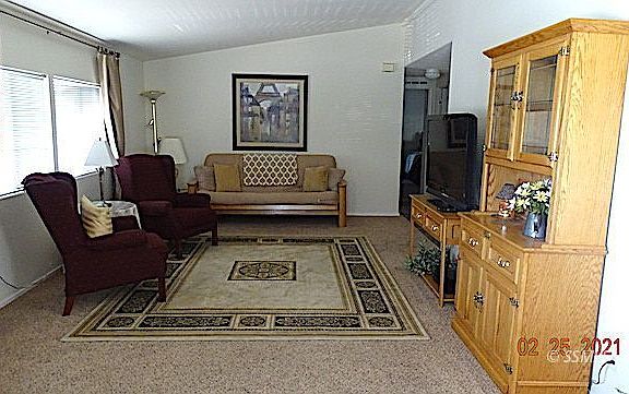 First impressions are everything, and this home has it all. Nicely landscaped front and backyard with artificial turf, a variety of plants, and trees. Fenced backyard for your furry pets, gardening or just to relax in the sun, plus large storage shed for your outdoor tools. New 30year Roof, to be installed by Jerry Sietsma Roofing. Covered deck for lounging and enjoying our beautiful sunsets. This home has the desired layout. Vaulted ceilings, dining area with great views, and a large bright and sunny kitchen with plenty of storage. And yes it has a utility room with a washer and dryer. Two good size rooms for guests, office or sitting. Large master suite and master bath, separate shower, and tranquil garden tub. Covered carport and side entrance to utility room. A must-see, you won't be disappointed. This home is in the Lake Ridge Senior Park, includes a clubhouse, pool, and hot tub. Space rent includes trash and sewer.