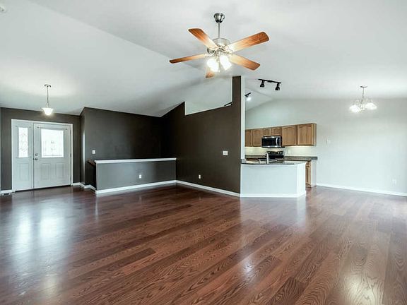 This immaculate ranch is filled with features you will love. Start with the great room vaulted ceiling & wood burning fireplace which flows into the kitchen with granite counters & upgraded stainless steel appliances, including a french door refrigerator. All have easy-care laminate floors. The sunny breakfast room slider opens to an oversized paver patio with a firepit, professional landscaping & vinyl privacy fence. The master suite has a bay window & walk-in closet & a private bath with dual sinks, soaking tub & separate shower. Handy main floor laundry. Spacious finished lower level has a fabulous rec room with a wet bar, family room with a dry bar, powder room & a bonus room, which would make a great office, playroom or craft room. Excellent neighborhood amenities, including 2 pools, playground, walking trails & more! Close to CarShield Field, where the Rascals play, Westhoff Elementary, parks, restaurants & shopping. You will never want to leave! See this beauty today!