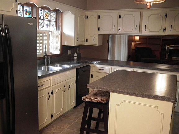 Older home charm in this brick three bedroom, two and a half bath home in an established neighborhood. The large combination family room/kitchen has solid surface countertops, prep island and plenty of cabinets. The family room has a fireplace, built-ins and patio doors leading to a sunroom. The laundry room off the kitchen also has a half bath. A formal dining/living room combination offers more entertainment space. Newer carpet and hot water tank are featured. The home also has a two car carport.