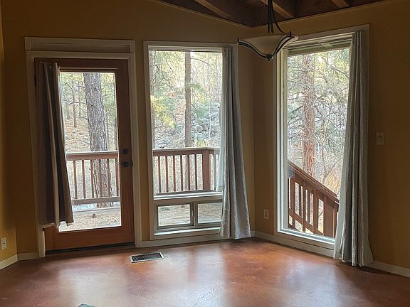 Stand alone studio overlooking the Rio De Flag. Huge deck with gorgeous canyon views. Adjacent to main house. Covered parking for 1 vehicle. For the person who loves the outdoors and nature. Perfectly placed between town and Snowbowl. Prefer single occupancy but negotiable. Kitchen includes dishwasher, two burner stovetop, convection/microwave oven, mini fridge. Owner pays water, gas, electric. $1000 security deposit and $200 non-refundable cleaning fee due at signing. Cleaning and maintenance expectations outlined in the lease. Prefer no pets but negotiable.