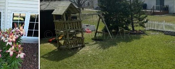 If you love the smell of lilacs coming through your windows & appreciate sunlight in a nice neighborhood- this place may be for you! Included is a 4 bdrm 2 bath house double stall garage as well as 3 storage spaces- appliances including dishwasher- W/D- fireplace & a wet bar with extra refrigerator downstairs. Outside is a large backyard & deck with a playground & firepit for entertainment making this a great place to check out!