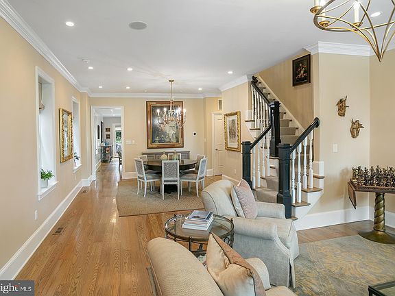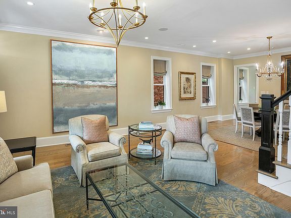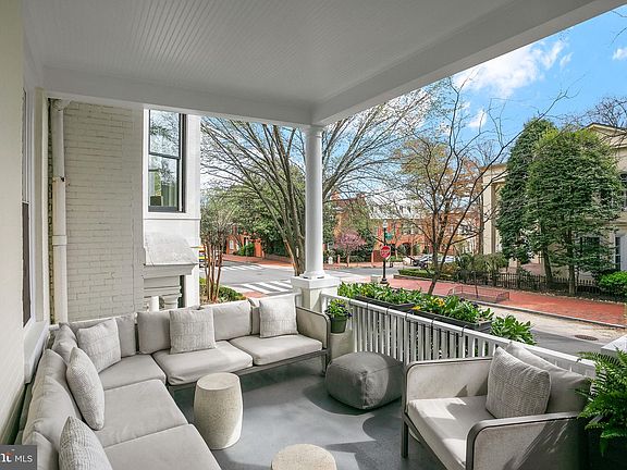 Fully renovated, semi-detached townhouse in the heart of Georgetown with abundant natural light and high ceilings throughout. Boasting a particularly wide lot and garden, and fabulous front porch, this elegant 4 BR/3.5 BA home offers sophisticated city living both indoors and out. Fully finished lower level with front and rear egress. Entry into the combined living and dining space provides a warm and spacious welcome. The main level also includes a chef's kitchen with marble countertops and island and new stainless steel appliances. The adjacent family space accesses the rear of the property via French doors. Pantry storage and a powder room complete the main level. Outdoors, the private terrace provides generous dining and relaxation space, a gas line hookup, mature landscaping and street access via private, gated alley. Upstairs the primary suite enjoys garden views, a large walk in closet and fully renovated marble bath. Two additional bedroom suites AND a dedicated home office complete the upper level. The lower level with full ceiling heights, front and rear walkout, provides additional family room space with wet bar, indoor and outdoor storage, bedroom (or gym space), full bath and laundry.