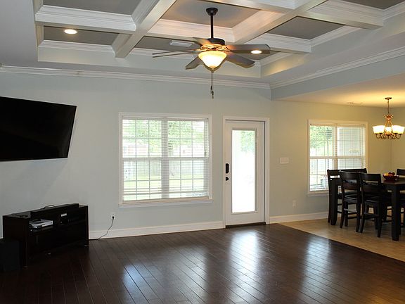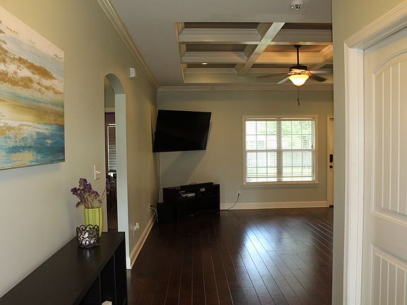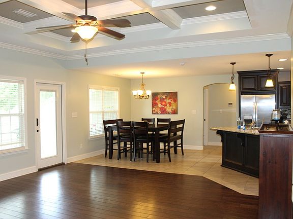 Step inside this great 4 bedroom, 2 bath home in Cottonwood Subdivision! A cute front porch anchored by columns enhances the curb appeal. Inside you'll love the open plan. Granite countertops, tile backsplash and stainless appliances all check off the upgrades list in the kitchen. A gorgeous coffered tray ceiling crowns the great room with wood style flooring. The master suite features separate spaces throughout; his and hers vanities, his and hers closets a large corner jetted tub and stand alone shower. A back porch for sipping your morning coffee with an additional brick paver open patio is what you'll find in the privacy fenced 1/2 acre back yard. RUN to this beauty before she's gone!