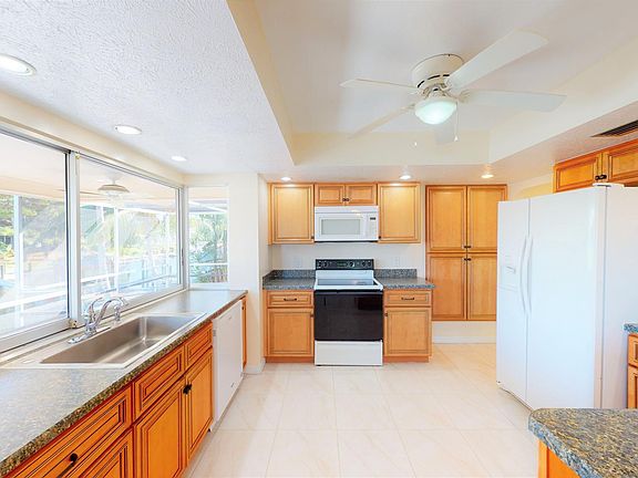 Indulge in the waterfront lifestyle with this wonderful sailboat access home situated on an expansive 80-foot wide canal. Recently updated, the kitchen and bathrooms boast modern finishes and fixtures. The master bedroom is a true oasis, complete with a walk-in closet, powder room, and luxurious ensuite bath. The open great room and dining room floor plan is perfect for entertaining, while the kitchen area seamlessly flows onto a spacious lanai overlooking the serene canal. Enjoy the convenience of city water and sewer, and take advantage of quick boating access to the Caloosahatchee River without any bridges, locks, or lifts. First, last and one months security. Credit and back ground checks. 1 year lease