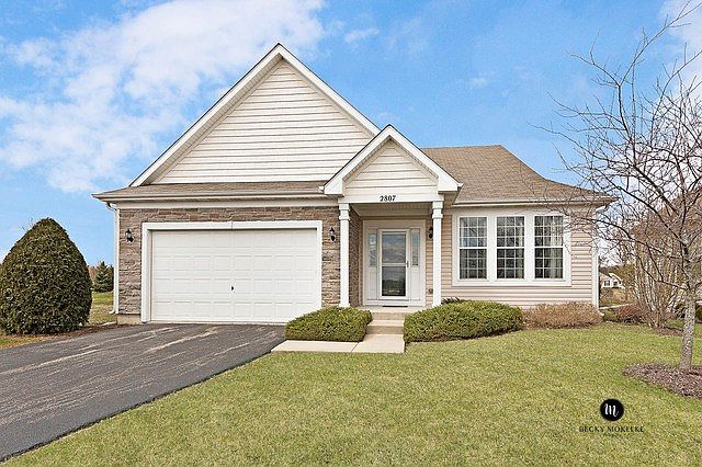 Move-In Ready Ranch! No SSA! This like-new beauty sits on the north side of Yorkville, with easy access to shopping, dining and I-88. Perfectly sized, this 2 bedroom + den/office model boasts a gorgeous kitchen w/ granite counters, 42" cherry cabinets w/ crown molding and a breakfast bar; gleaming hardwood floors; double-sided gas fireplace; arched doorways; 9' ceilings; formal dining room; living room w/ tray ceiling; glass French doors into the den/office; luxury master suite w/ walk-in closet, whirlpool tub and 6' cherry vanity w/ double sinks; 1st floor laundry room w/ utility sink; deep-pour basement w/ rough-in for future bath - a wonderful option to expand your living space; oak doors & trim; covered porch overlooking pro landscaped yard; great curb appeal w/ brick accents and cute front porch; quiet cul-de-sac lot; 2 car garage. Enjoy low maintenance living: association covers professional lawn care and snow removal, including driveway and sidewalk to front door! Home Warranty!