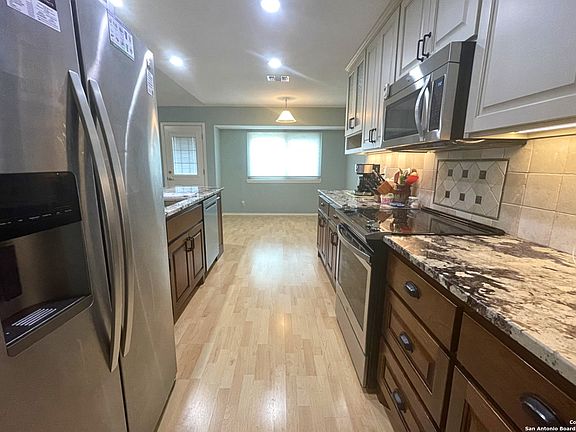 Welcome to this gorgeous one-story home in the coveted NE school district, featuring 4 bedrooms and 2 baths. Nestled in a lovely cul-de-sac within an established neighborhood, this property offers a fantastic floor plan, a formal living room, a family room with a fireplace, and a spacious backyard with mature trees. The kitchen is stunning, designed with modern finishes and ample storage. The home is plumbed for a water softener and has a voluntary HOA. Conveniently close to shopping, the Medical Center, USAA, and Six Flags, this is a must-see!
