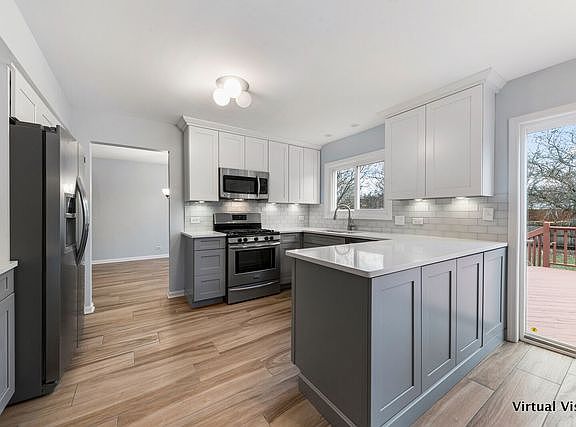 Imagine settling in this move-in ready 4 bedroom 2.5 bath home right in heart of Neuqua Valley School district. Over $90k in upgrades in 2019 including new roof, siding, kitchen cabinets, quartz counters, floors and so much more. The natural light in this home illuminates every aspect of your new home. You'll be the envy of the neighborhood in this beautiful home. New Items in this home in 2019: Roof, siding, gutters, cabinets, counter tops, six panel doors, new floor on first level, lighting fixtures, windows, sliding glass door, painted deck, mud room, powder room completely renovated, barn door in master bedroom, entire house freshly painted, new baseboards, new water heater in 2018 and new stair bannister.