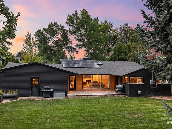 Captivating midcentury modern home on historic Kootenai street in the Depot Bench district. What's better than a rate buydown? Solar panels! This one of a kind also offers handcrafted wood siding inviting you into an open living room with floor to ceiling windows seamlessly overlooking a mesmerizing yard & stone patio. Enjoy the authentic tiled fireplace, minimalist built-in buffet, & original hardwoods throughout. The dining flows into the updated kitchen with breakfast nook, granite counters, stainless appliances & pantry for plenty of storage. Expansive primary suite features corner windows, an ensuite bath with soaker tub, walk-in closet & dual vanities. Delightful touches emulate from period lighting & tilework to adorable wallpaper. 1/4 lot offers fruit trees & vines, established garden & adorable A-Frame playhouse & 2 car garage offers extra storage space an unheard of amenity on the Bench. Within walking distance to sought after Monroe school & minutes to downtown & BSU.