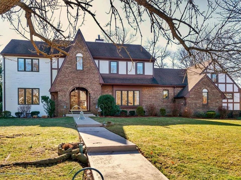Set in prestigious North Wall Township, this beautiful tudor home boasts steeply pitched gable roof, elaborate masonry chimney, embellished entry doorway, and features 4 BR, 3.5 bath across 4000 sq ft of immaculate living space. Enter to foyer w/ porcelain tile floors and be led to sun filled living room, formal dining, large family room w/ fireplace and adjacent office, w gleaming hardwoods throughout. Gourmet kitchen with 42" cabinets, granite counters, SS appliances, and adjacent eat in w ample natural light through sliding doors to backyard. Full bath off kitchen. Retreat upstairs to master BR w soaking tub and stand up steam shower. Three additional BR, one full bath complete second floor. Finished basement with half bath. Fenced backyard with deck and large heated swimming pool.