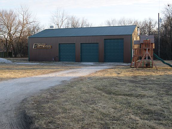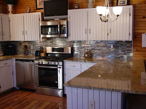 Country living close to town! This amazing 3-bed/2-bath log home with a loft that could be used as a 4th bedroom sits on close to two scenic acres. The dreamy wraparound porch welcomes you. Step inside the open concept living space to a spacious living room with vaulted ceilings and a remodeled kitchen with granite counter tops, eat-at bar, pretty back splash, and new appliances. From the kitchen, access an expanded back deck with built-in above ground pool. Additional updates include a newer roof, heating and air, & new flooring throughout. Get peace of mind with a large storm shelter in the attached two-car garage. There's also a 40 x 60 wood-heated & insulated shop with three garage spaces, including space large enough for a motor home..