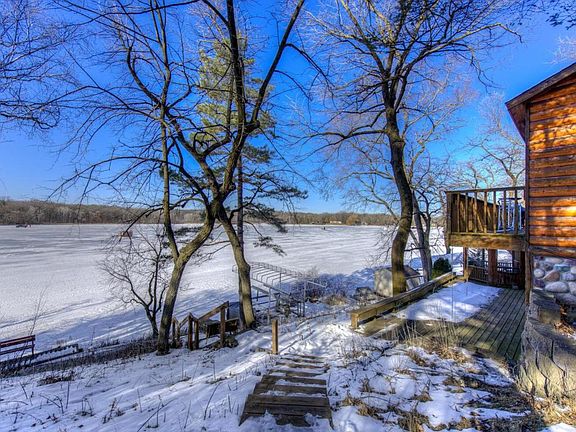 Charming move in ready home on prestigious Blue Lake! A great lake to fish & boat! Fabulous west facing lake views & acreage of nature across the lake. Includes a guest house, bunkhouse, shed, boat house, oversized 2 story, 2 car garage that could add additional office, bedroom, etc. Cozy kitchen with center island and built-in bench seats and table. Active lake association that is committed to maintaining lake quality. Family memories start here! See supplements for further features & updates!
